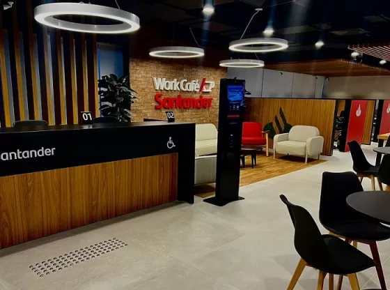 No espaço, antes ocupado por um posto bancário, o work/café Santander abre as portas para clientes e não clientes; inauguração será nesta segunda DA…