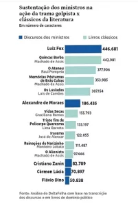 Ainda sobre Fux, antes que parte do povo brasileiro deixe o sujeito em paz, a “Folha de S.Paulo” teve a pachorra de comparar o volume de letrinhas do voto dele com o de obras consagradas da literatura brasileira e portuguesa e, ainda, com os votos dos demais ministros da primeira turma nos processos. Fica a conclusão de que, pelo menos em termos de eficácia, tamanho de voto não é documento.