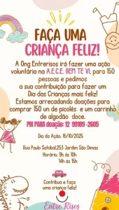 A comemoração do Dia das Crianças (12) no Colinas Shopping terás o sábado e domingo com música, personagens animados, pinturas e atividades gratuitas e semigratuitas.