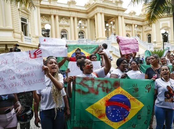 Grupo de moradores protesta em frente ao Palácio Guanabara contra os resultados da Operação Contenção. Foto / Fernando Frazão/Agência Brasil