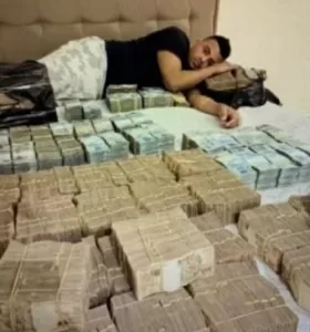 Você acha que a foto abaixo mostra um xeique árabe do petróleo com o dinheiro que pretende gastar no mês? Ou o Vini Jr. contando o último “bicho” que recebeu do Real Madrid? Nada disso: é simplesmente o ex-deputado estadual TH Joias, do MDB do Rio de Janeiro, que foi preso pela Justiça por suposto envolvimento com o CV (Comando Vermelho). TH posou com milhares de cédulas de real que ocupavam a sua cama.